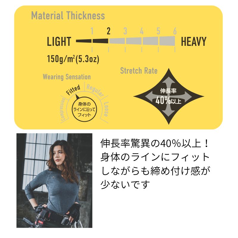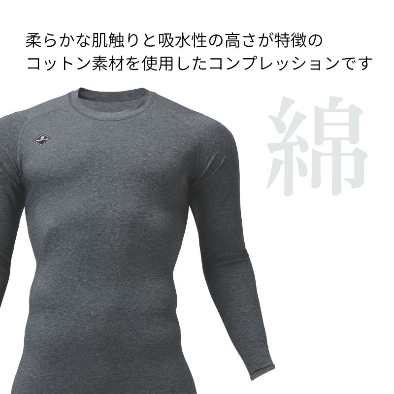 滑らかな肌触りと吸水性の高さが特徴のコットン素材を使用したアンダーレイヤーコンプレッション