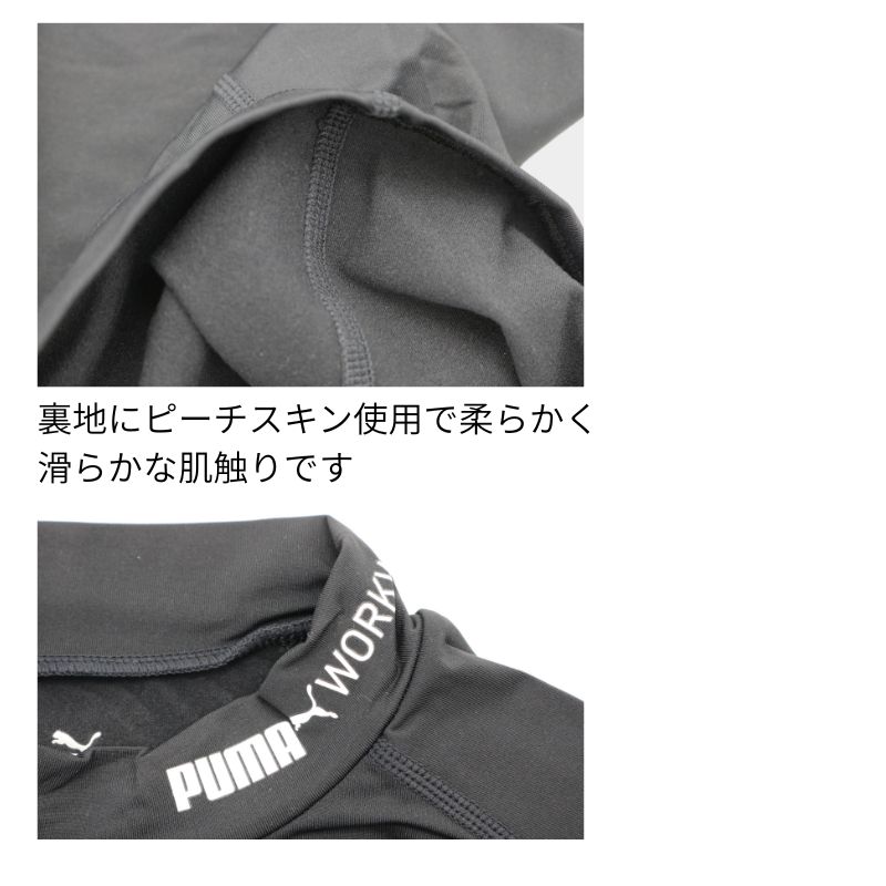 首元まで暖かいモックネック仕様で、冬場のインナーにおすすめ。
