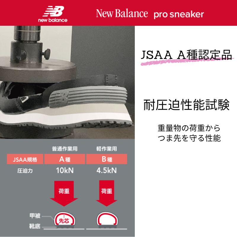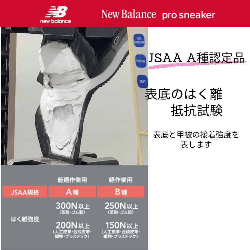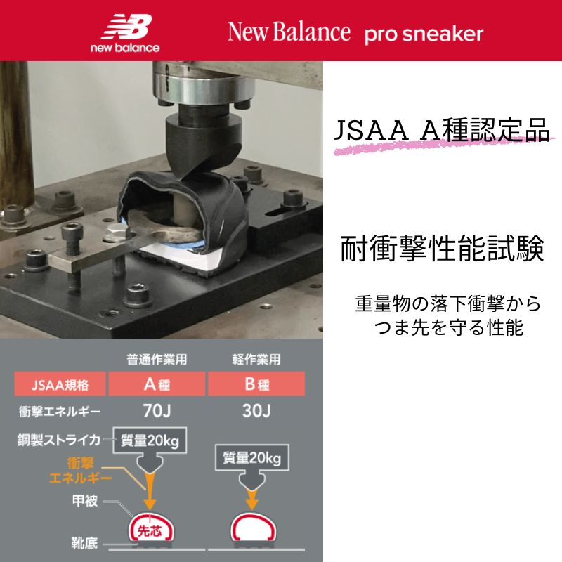 つま先にはワイド樹脂先芯(JSAA認定A種)を搭載し、衝撃から足元をしっかり保護。