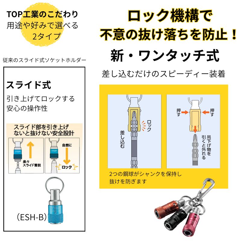 TOP工業の携帯用ホルダーシリーズにワンタッチ式ソケットホルダーが登場しました。