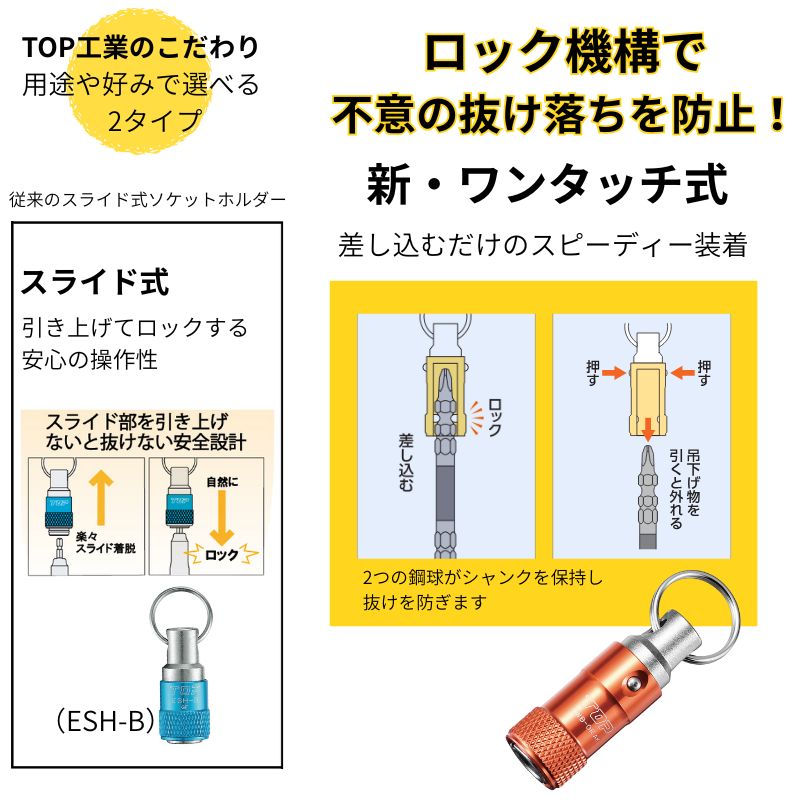 TOP工業の携帯用ホルダーシリーズにワンタッチ式ソケットホルダーが登場しました。